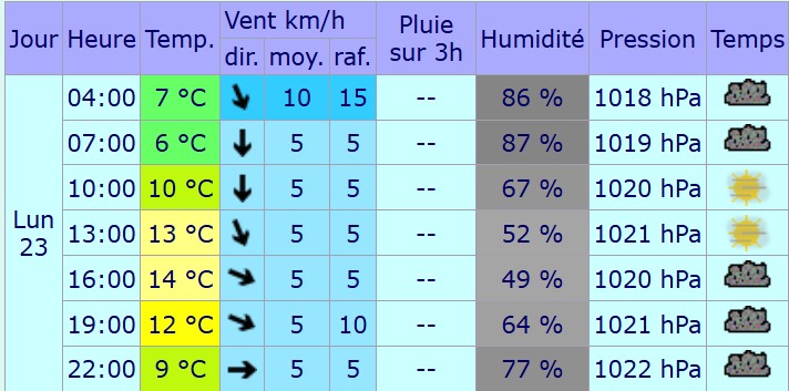Soleil : Lever : 6h44 Coucher : 19h06 plus 4 minutes p/r à hier.