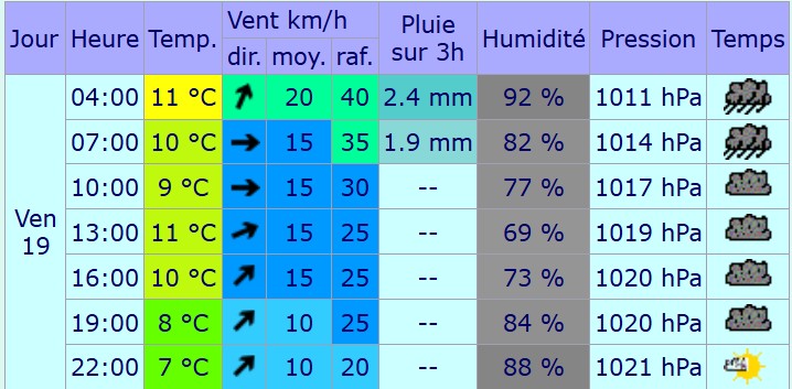 Soleil : Lever : 8h45 Coucher : 16h45 moins 0 minute p/r à hier