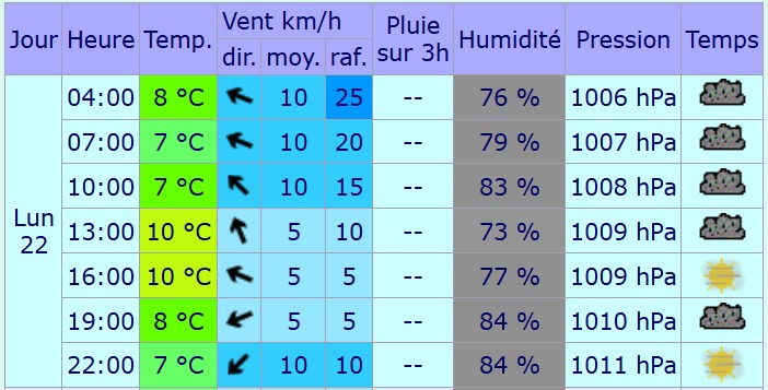Soleil : Lever : 8h47 Coucher : 16h47 moins 0 minute p/r à hier mais décalage d'une minute vers le soir